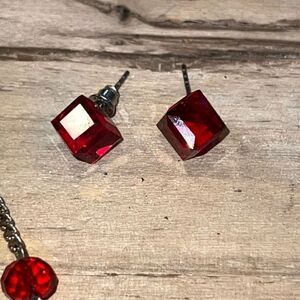 Red Beaded Y Necklace With Matching Bracelet and Earrings