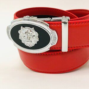 Red Belt Slide Belt Oval Silver Buckle Not Holes Slide Belt Fashion Street New