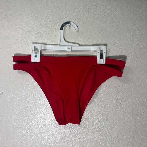 Stylish red bikini bottom with double side straps. Perfect for beach days.