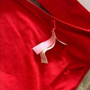 Stylish and vibrant red bikini set perfect for a day at the beach. Enjoy comfort and elegance with this eye-catching swimwear. Medium top and bottom. Top is generic and bottoms are VS. the reds are a perfect match.