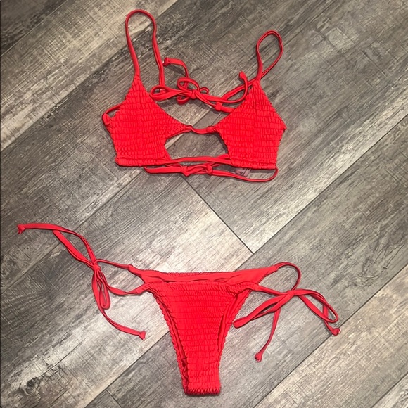 Ribbed, red bikini set. Straps are adjustable, brand new never worn.