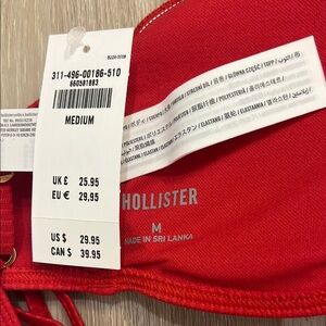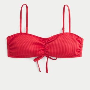 Stylish red bikini set with a bandeau top and high-waisted bottoms. Perfect for the beach or pool. Ribbed fabric texture. NWT never worn