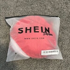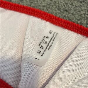 Stylish red bikini set with a textured design. Includes a bandeau top with padded inserts and high-waisted bottoms. BRAND NEW!