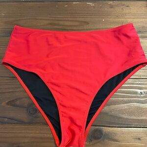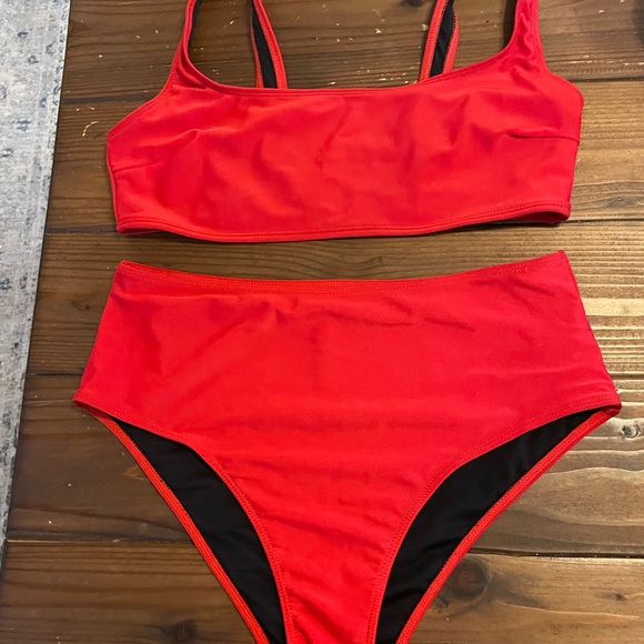 Stylish red bikini set with high waisted bottoms. Never worn. Fit like an XL. Perfect for beach days.
