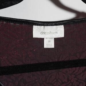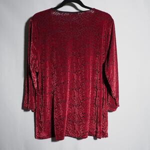 Red Black Burnout Velvet Whimsigoth Scoop Neck Long Sleeve Boho Top 2X Floral