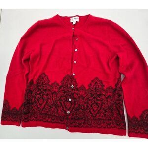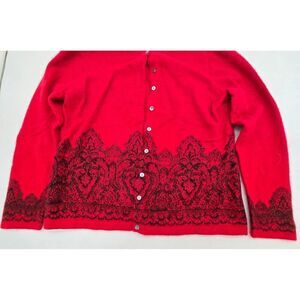 Red & Black Charter Club Cashmere Cardigan Sweater With Lace Design Size M