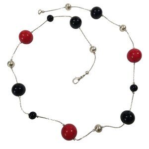 Choker with red, black and silver beads and very fine chain, claw clasp - 24" total