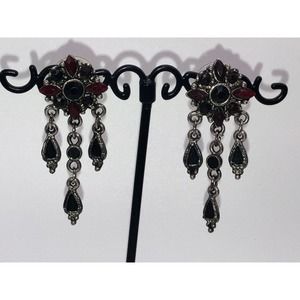 Red & Black Medallian with 3 Tier Drops 1 .75 Inch Earrings Vintage!