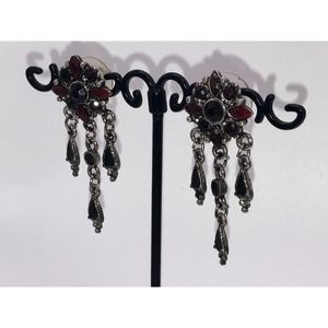 Red & Black Medallion with 3-Tier Drops 1.75-Inch Earrings Vintage!