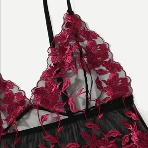 Red & Black Mesh Lace Slip Dress Thong Lingerie