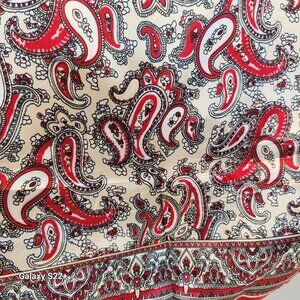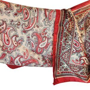 Red Black Paisley Silk Scarf Western Wild Rage Boho Chic Square Lightweight Retr