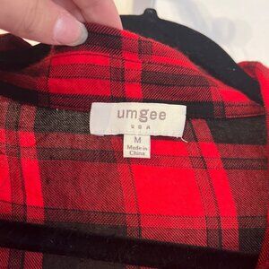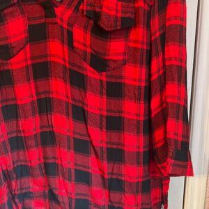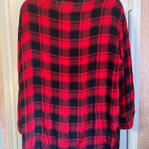 Red & Black Plaid Button-Up Tunic Blouse By Umgee M Frayed Hem 100% Rayon Made I