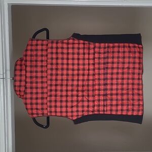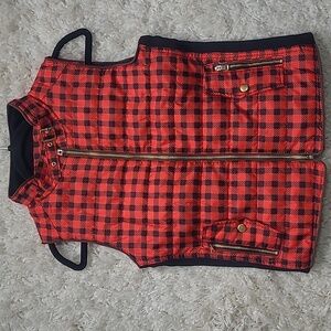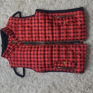 🔥 Red & Black Plaid Quilted Puffer Vest – Women’s Sm – Classic Layering Piece