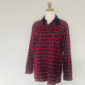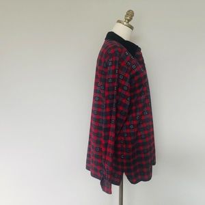 Red Black Plaid Shirt Large Black Corduroy Collar Basic Editions Holiday