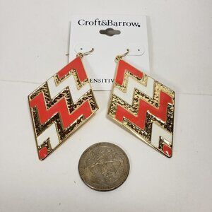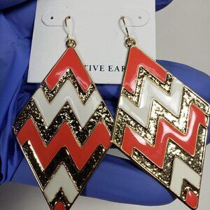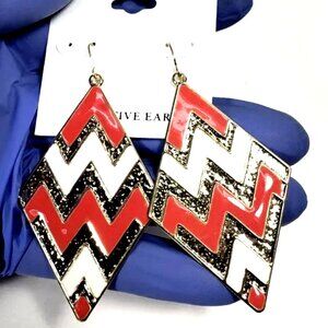 Red Black White Chevron Diamond Shape Drop Earrings – Bold Statement Geometric