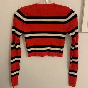 Red / Black / White Striped Zara Knit Cropped Long Sleeve Size S
