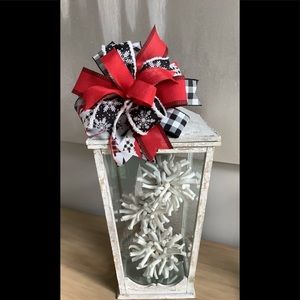 Mix Of Red, Black, & White Ribbons. This Bow Is In Stock Ready To Ship. Wired Ribbons. I Have Attached Floral Wire Ready For You To Attach For Easy Hanging. This Listing Is For The Bow Only. Lantern Is Not Included. Great For Winter!! It Weighs 4 Ounces. I Have More Bows To View Under My Listings. Thanks For Checking Out My Shop!