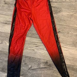 Red & Black Zip-Up Hoodie & Side-Stripe Leggings