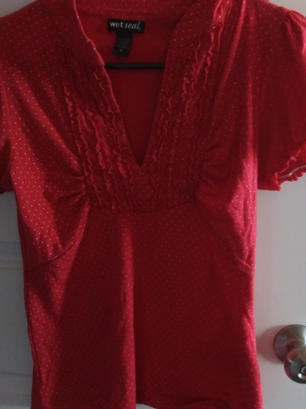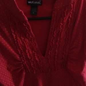 Cute red blouse with ruffle pattern and polka dots. Still looks brand new.