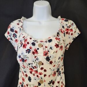 Red Blue Floral Babydoll Top Size M Retro Y2K Coquette Americana Girlhoodcore