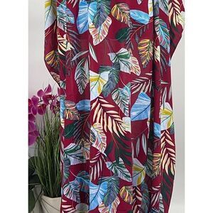 Tropical Foliage Design Reds, Blue and Green MAXI SARONG Swim Coverup Hawaiian Print Batik Kīkepa Pareo Lavalava Beach Wrap Skirt Summer Scarf