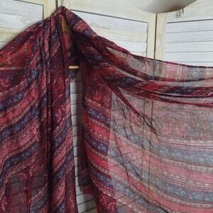 Red Blue Large Scarf Pashmina Wrap Sheer Light Shawl Patterned 40x72
