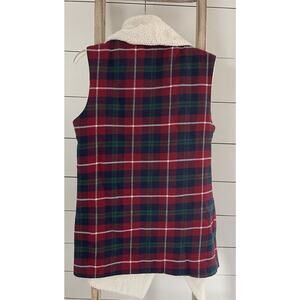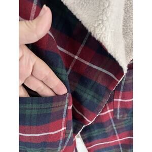 Red Blue Plaid Vest Sherpa Lined-Cardigan E2 Clothing Size Large