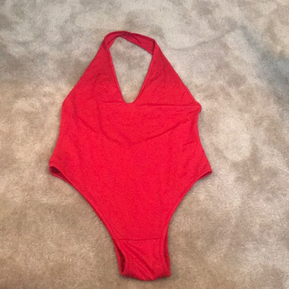 Red, back expose, body suit