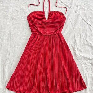 Red Boho Women's Sexy Textured Open Back Halter Neck Dress