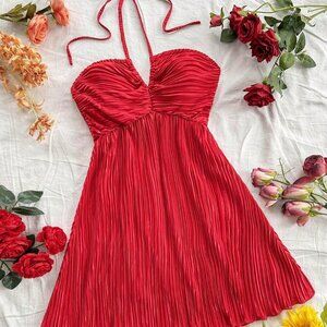 Red Boho Women's Sexy Textured Open Back Halter Neck Dress