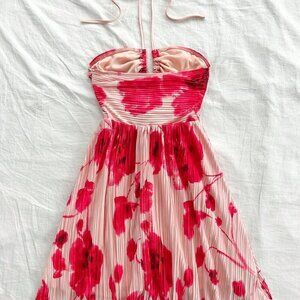 Red Boho Women's Tie Dye Floral Print Bowknot Tie-Neck Dress