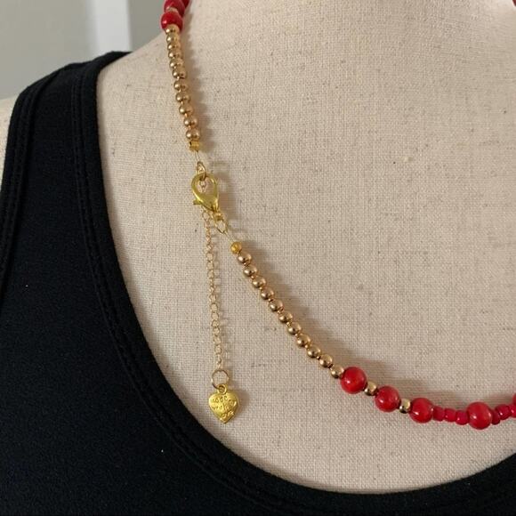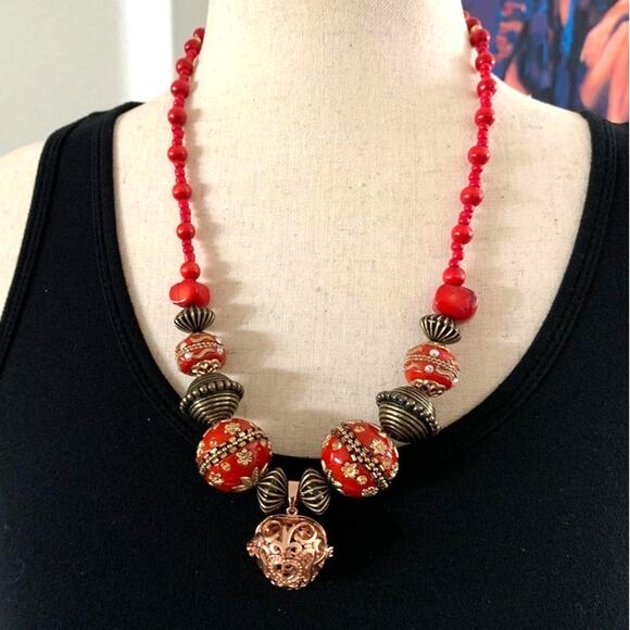 Red Boho statement necklace with Matching earrings Handmade Essential oil diffuser necklace
