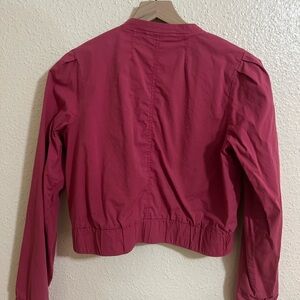 Red Bomber Jacket with Stand-Up Collar and Full-Length Sleeves