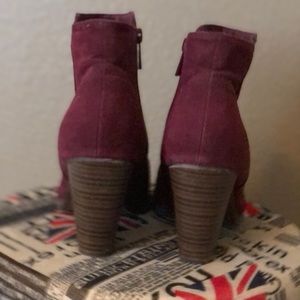 Faux suede red boot, these are super cute and comfortable. Light wear, there is one small black mark, see picture.