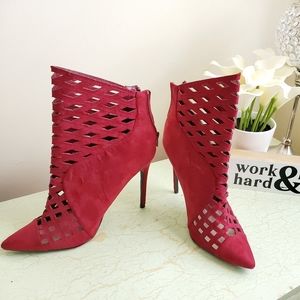 Never worn red suede booties. Dress up a cut pair of ripped jeans or that cute mini in your closet. Never worn.