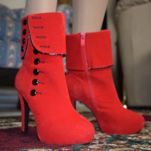 Red Boots with Black Buttons