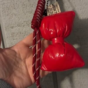 Add a pop of color to your accessories with this stylish red bow keychain. Perfect for adding flair to your bag or keys.