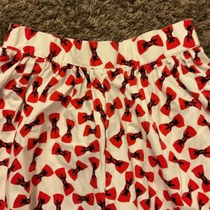 Chic and playful, this red bow patterned skirt is perfect for any occasion. Its vibrant design adds a touch of fun to your wardrobe.