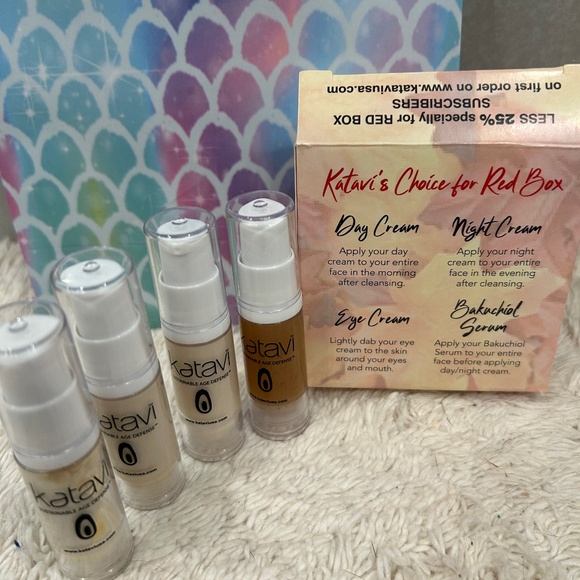 Day cream, night cream, eye cream and Bakuchiol serum. Two multi pack boxes.
