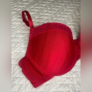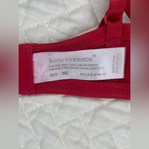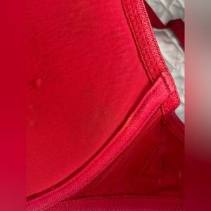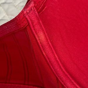 Body Embrace red bra size 36 C. Has 2 spots of discoloration on the inner side on the wire part (pictured)
