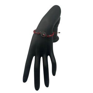 This elegant red braided bracelet features a Saint Michael charm and sparkling rhinestones, perfect for adding a touch of spirituality and style to any outfit.