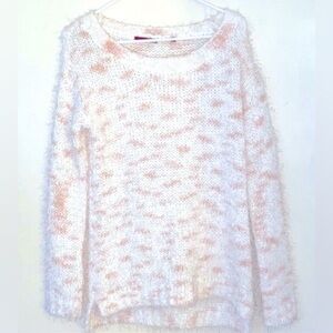 Red Brand Pink & White Scoop-Neck Fuzzy Sweater-Size Small-Acrylic Blend