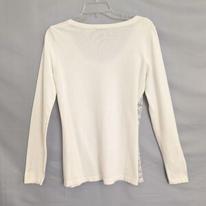 Red Brand White Size M Sweater Leopard Lace Overlay Long Sleeves Animal