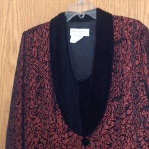 Red Brocade pant length evening jacket with Velvet Collar! Stunning look!! Never worn.