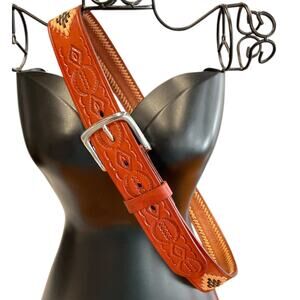 Red Brown Leather Mens 40 Western Belt Tan Dark Brown Stitching Southwest Cowboy
