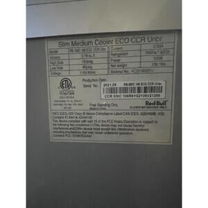 The Red Bull Fridge RB-SMC 130 Eco GDC Slim Medium 105V is a sleek and efficient back bar/bottle cooler designed by Red Bull. This unit is specifically crafted to provide optimal cooling capabilities for storing and preserving beverages, making it ideal for use in bars, restaurants, or any establishment that requires a reliable and stylish beverage storage solution. With its slim design and medium voltage requirement, this Red Bull fridge offers a practical and stylish addition to any commercial kitchen or bar area.