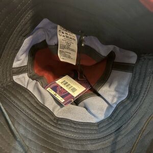 Stylish bucket hat featuring a blend of red, blue, and black. Perfect for outdoor adventures with an adjustable chin strap for a secure fit. Show off your love for Red Bull Rampage.