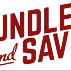 Round red sticker with 'Bundle & Save' text in white.