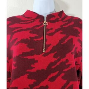 Red Burgundy Camo Print 1/4 Zipper Pullover Sweater Top Large Soft Comfy Stretch