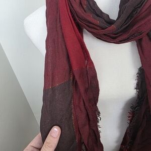 Red Burgundy Gold Sparkle Whimsygoth Raw Hem Winter Fall Casual Layering Scarf